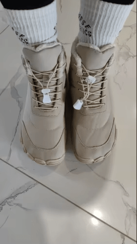 Utstyrt med en gummisåle som er sklisikker, garanterer disse skoene overlegen trekkraft, ideell for å gå trygt på snø, is eller våte fortau.